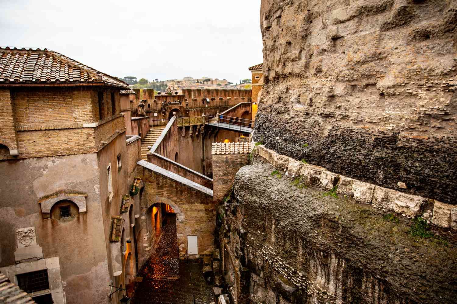An 800-meter fortified corridor was constructed between the castle and Vatican City in 1277 so that the pope could flee if he was in danger. Pope Clement VII sought refuge in the fortress during the sieges of Rome in 1527.